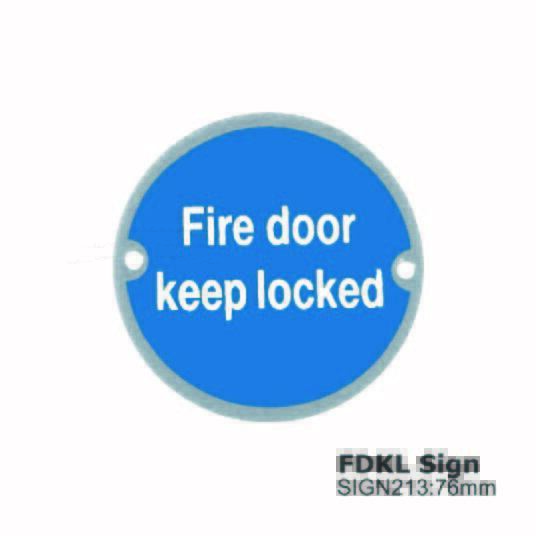 Round Fire Door Keep Locked  Sign - 76mm - Satin finish