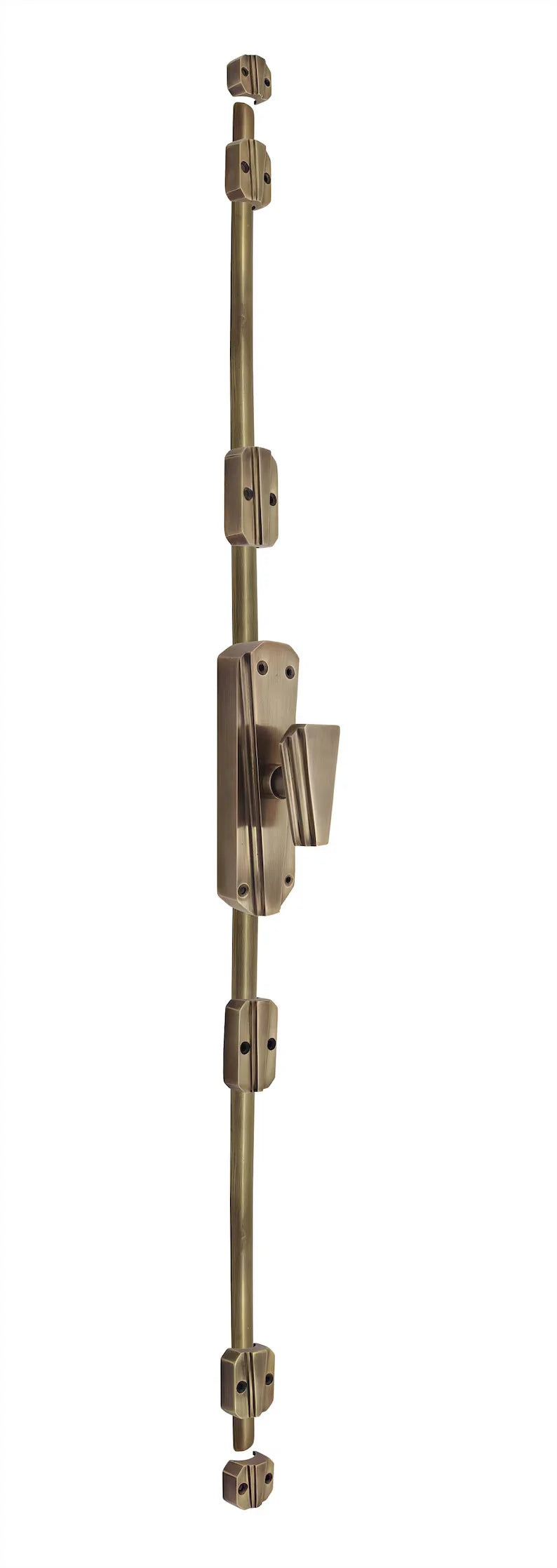 Introducing the Euro Art's Valentino Antique Brass Unlacquered Door Brass Espagnolette/Cremone Bolt, a vintage-inspired and exquisite addition to your door hardware collection. This Cremone Bolt is designed for doors up to 9 feet in height, showcasing a luxurious and timeless Unlacquered Antique Brass finish that remains unlacquered for a truly authentic look.